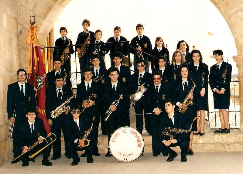 El germen del proyecto, sin embargo, había surgido un año antes, en 1984, cuando un grupo de jóvenes entusiastas y algún que otro más mayor iniciaron la charanga con la ayuda de Víctor Nuez y José Nuez Buj que más tarde se convertiría en banda bajo la dirección de Miguel Medina. Fueron años de júbilo, de numerosas salidas y reconocimientos. Prueba de ello fue la primera Concentración de Bandas que se celebró en La Mata en 1992. El pueblo se volcó en su totalidad, las madres prepararon la comida, los jubilados llevaron los estandartes de las once bandas acompañados de los niños…a pesar de ser un pueblo pequeño dimos ejemplo de unidad y compañerismo. A lo largo de los años esta labor continuó y nuestra banda ha sabido llevar la música allí donde era requerida: concentraciones de bandas, conciertos en otras localidades como por ejemplo el de Barcelona en 1993 en el centro aragonés de la juventud, fiestas locales (procesiones, charangas, concierto, etc.).