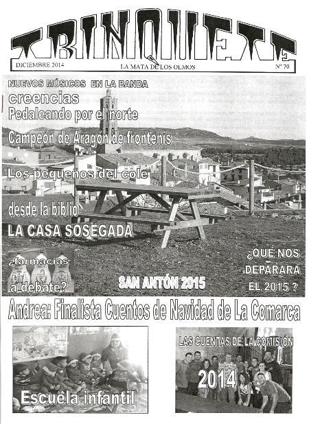 La Asociación Cultural "El Trinquete", como su nombre bien indica, es quien se encarga de gestionar la actividad cultural (nuestra tradicional Semana Cultural, entre otras actividades) en nuestro pueblo y también edita la revista "El Trinquete", de periodicidad bianual (julio y diciembre). Allí matinos y colaboradores de pueblos vecinos publican noticias de actualidad y novedades acaecidas en nuestro pueblo y la Comarca. A continuación se ofrece una galería con 24 portadas de la revista.