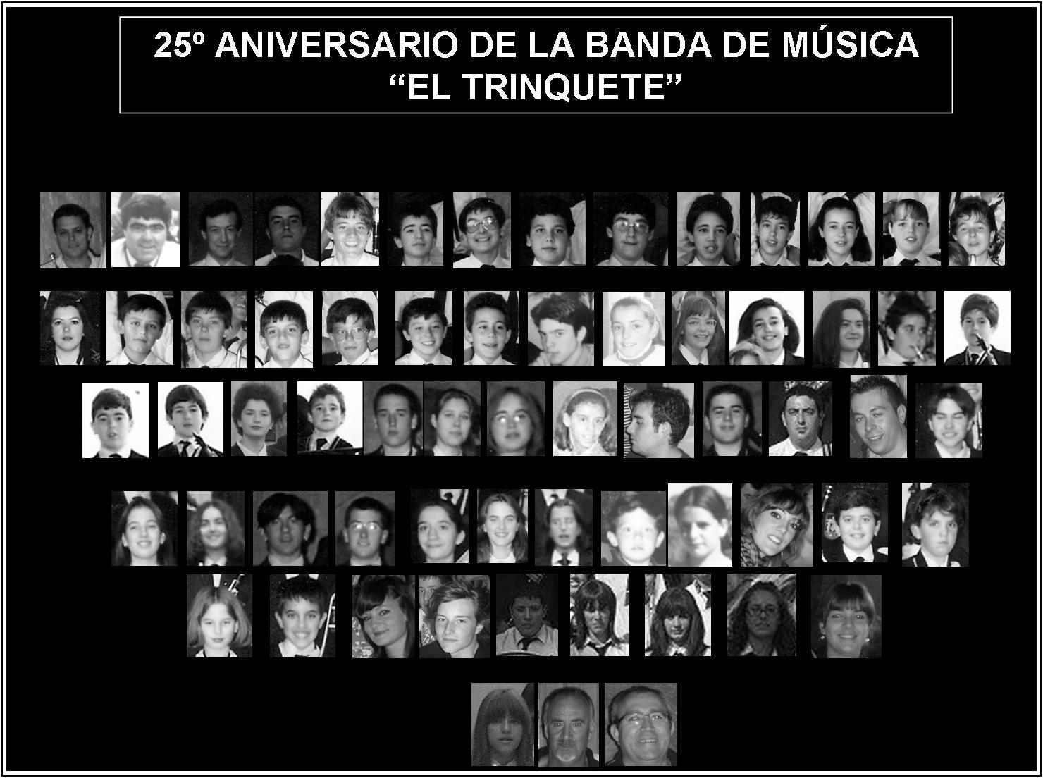 En la imagen de arriba podemos observar la orla con todas las personas que integraron la banda en sus primeros veinticinco años de vida. Abajo podemos observar un collage hecho, también, con todos los que integraron la banda. Clicando en cada imagen pueden ampliarla (1480 X 1104 píxeles para la orla y 1062 X 840 píxeles para el colage) y después descargarla.